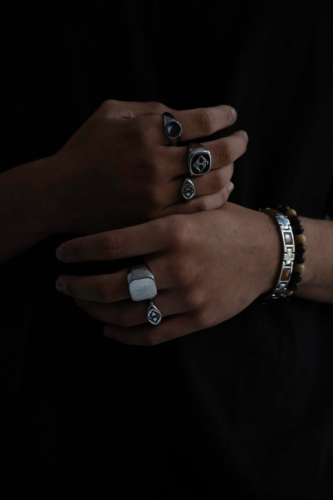 A collection of 925 sterling silver and polished rings—crafted for those who like their statement to last. Whether you keep it sleek or stack them up, these rings bring the perfect balance of shine and edge.